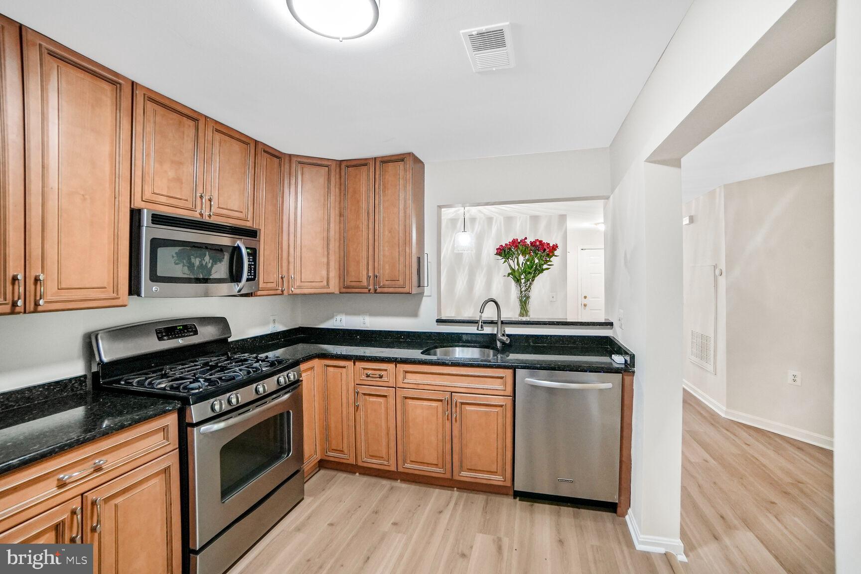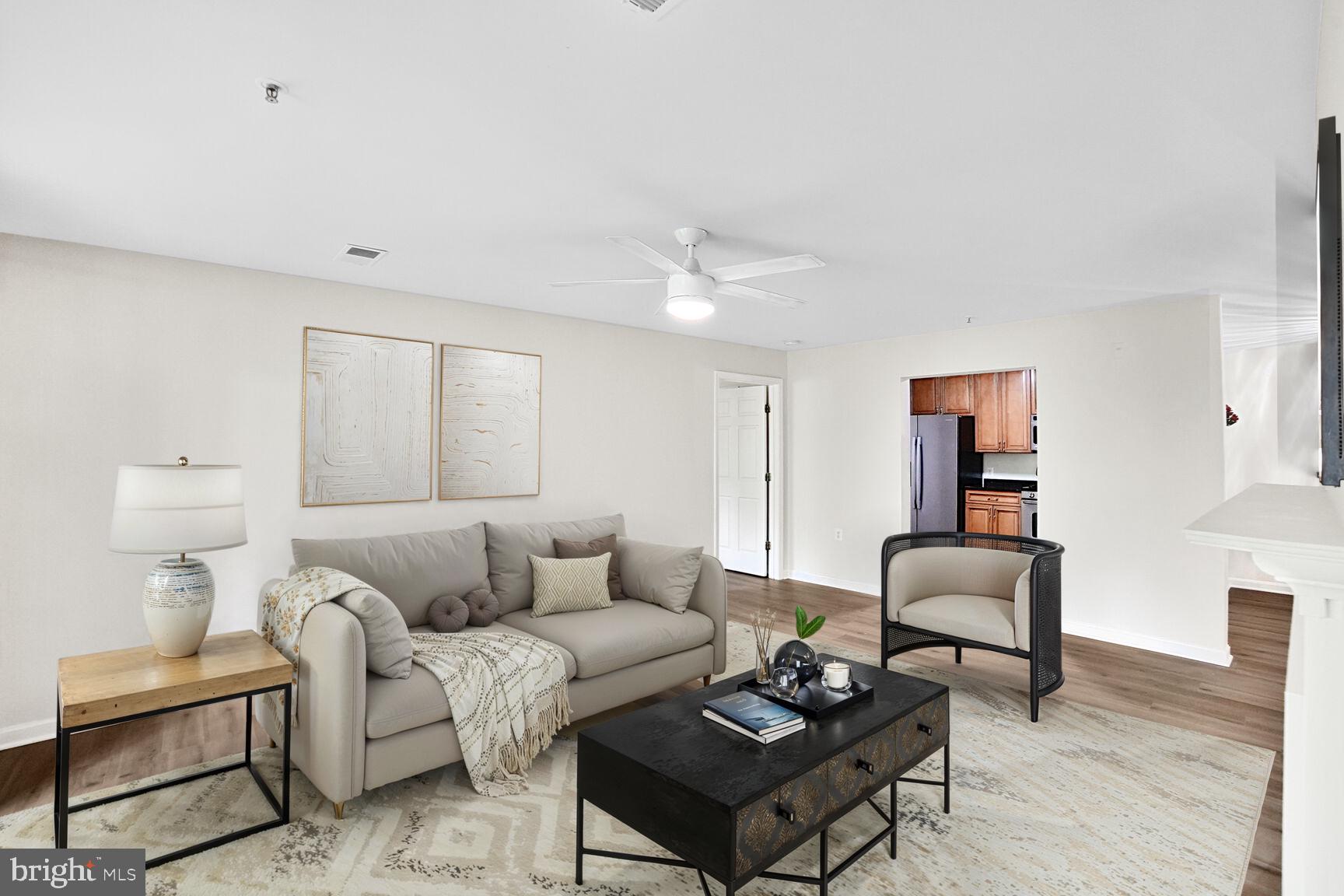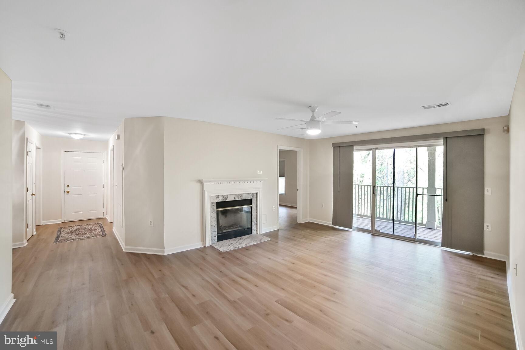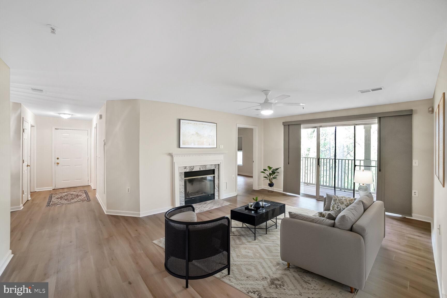 This spacious 2-bedroom, 2-bath condo offers the perfect blend of comfort and convenience in a desirable garden-style community. As an end unit, it features a large private deck overlooking trees, providing a peaceful outdoor retreat. The kitchen is equipped with granite countertops and stainless steel appliances, while both bathrooms have been thoughtfully updated. The living room centers around a cozy fireplace, and the two generously sized bedrooms are situated on opposite ends of the floor plan for added privacy. Each bedroom includes a walk-in closet, and the separate laundry room has a full-sized washer and dryer. Residents enjoy access to community amenities including a pool, tennis courts, and basketball courts. Located just minutes from Crown Farm's shopping and dining, with easy access to I-270, I-370, and a short 10-minute drive to Shady Grove Metro.
