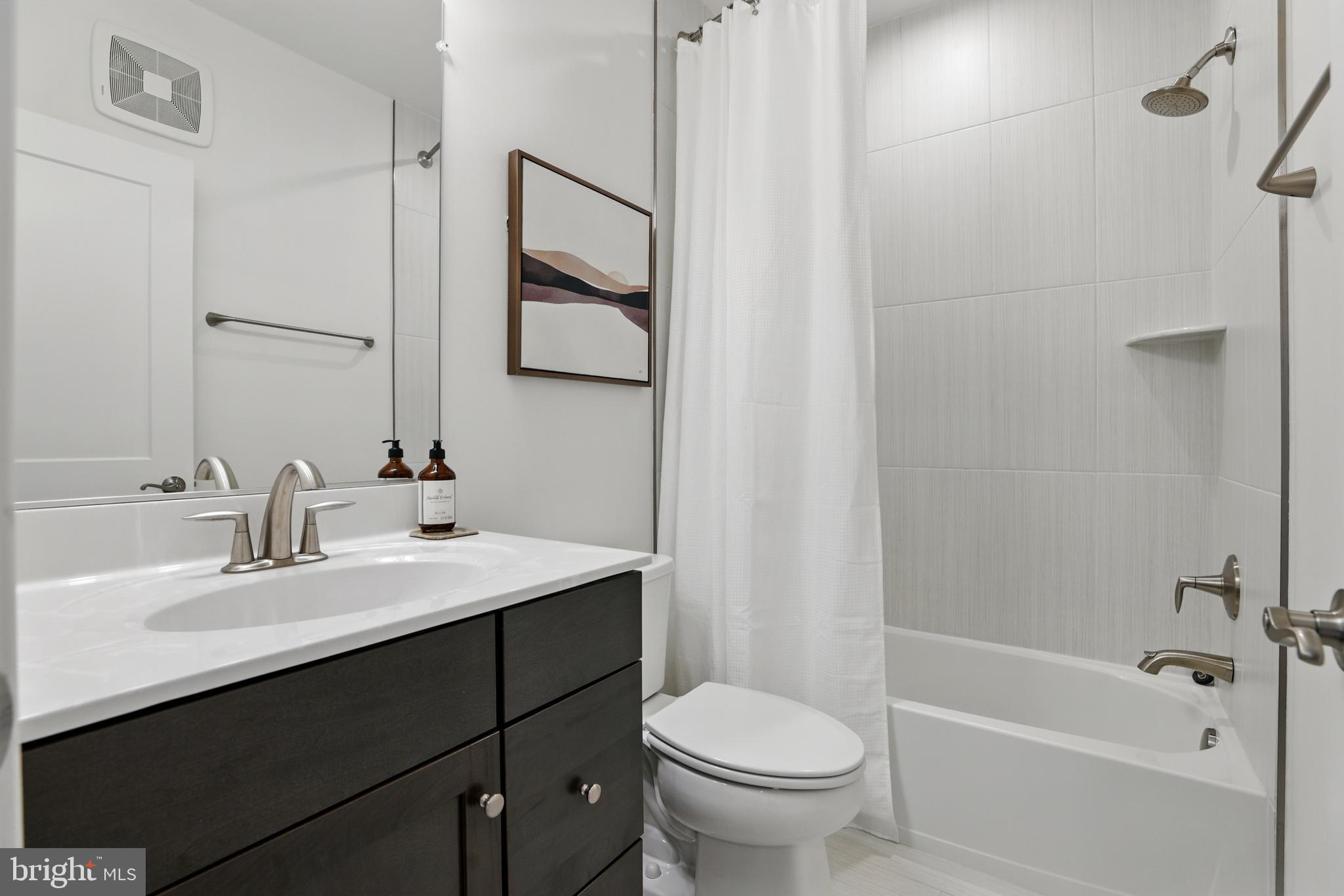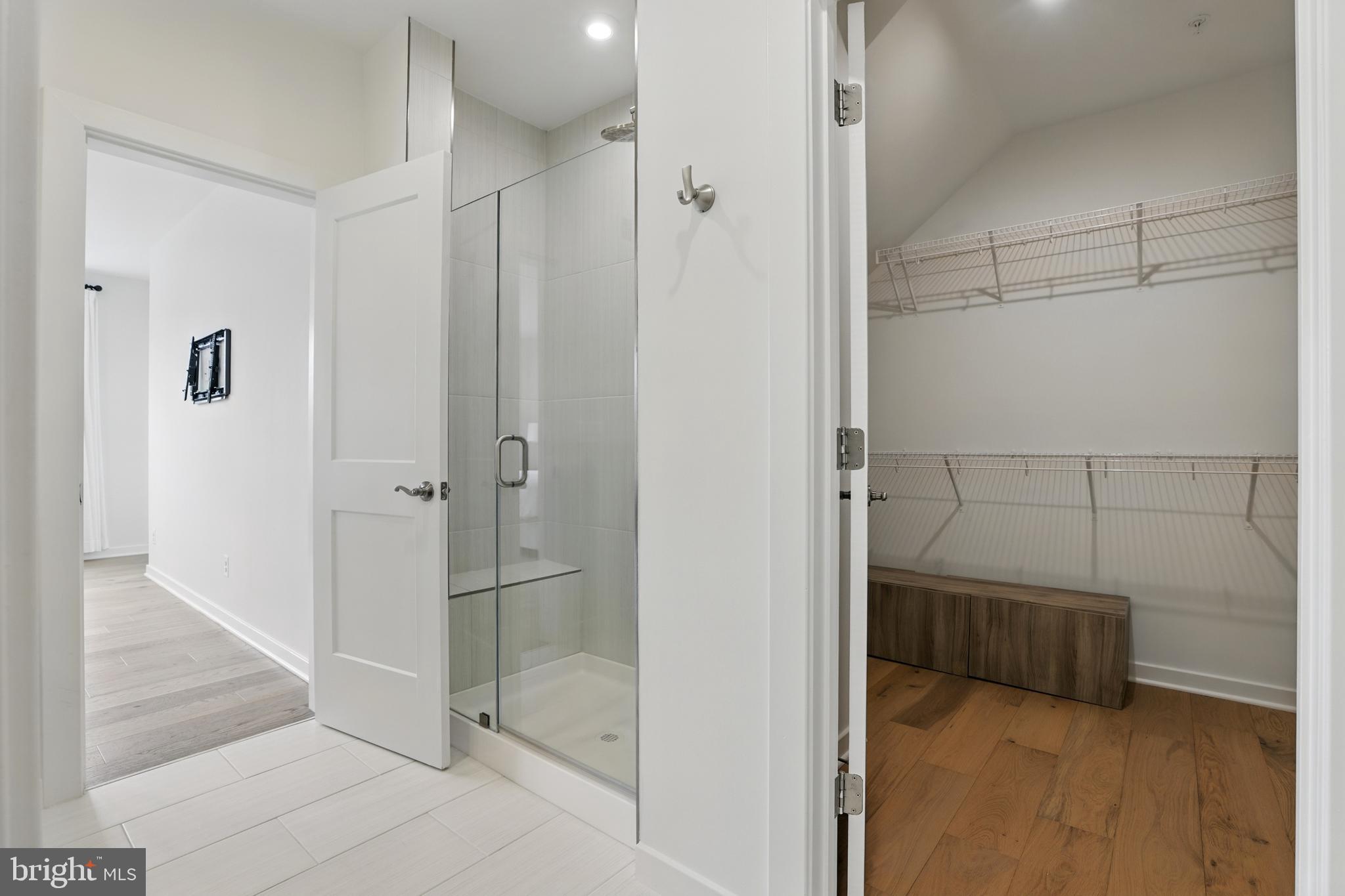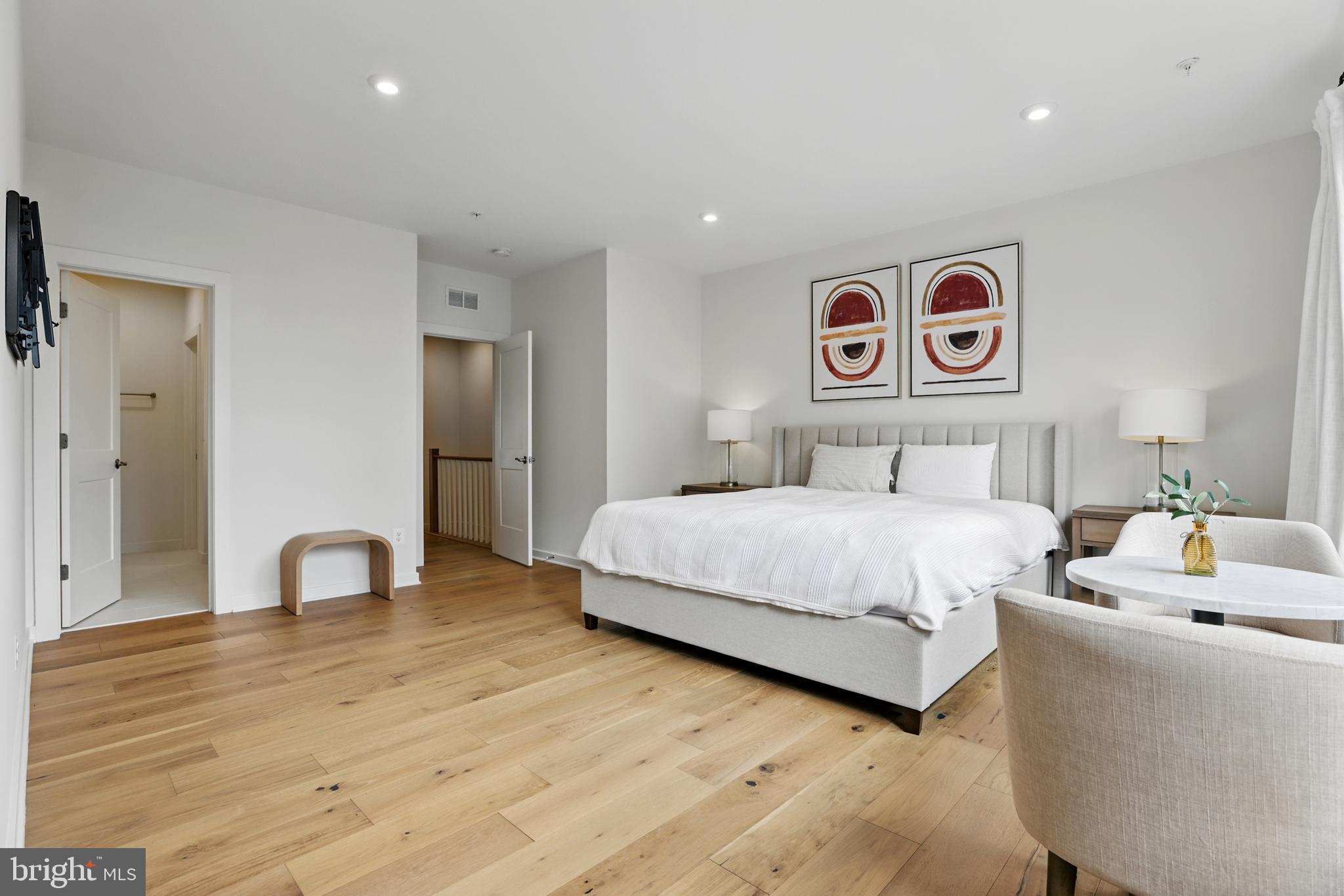 The oversized primary bedroom suite is a true sanctuary, featuring two large walk-in closets and a serene en-suite bathroom. Designed with modern finishes and timeless touches, the bathroom boasts high-end cabinetry, quartz countertops, and a frameless glass shower complete with a hydro-rail system--bringing spa-like luxury to everyday life. The second bedroom is generously sized and bright, with oversized windows that pour in sunlight and create a welcoming atmosphere for guests or family members.